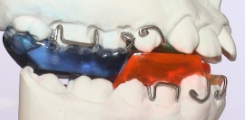 ในผู้ป่วยที่มีฟันถาวรทั้งหมดแล้ว อายุระหว่าง 12-15 ปี สามารถนำแรงในการเจริญเติบโตที่ยังมีเหลืออยู่มาใช้ในการจัดเลื่อนกระดูก ขากรรไกรล่าง ขยับออกมาทางด้านหน้าได้ โดยนอกจากใช้เครื่องมือจัดฟันชนิดติดแน่น เช่น SUS (และ Herbst appliance) แล้ว เครื่องมือชนิด Twin-Block แบบ Dr. William J. Clark ยังสามารถช่วยรักษาภาวะคางหดสั้นได้ผลดีอีกด้วย ข้อดีของเครื่องมือจัดฟันที่ต้องใส่อยู่ตลอดเวลานี้คือ ผู้ป่วยสามารถถอดออกด้วยตัวเองได้ ทำให้ช่องปากว่างสามารถพูดได้ชัด